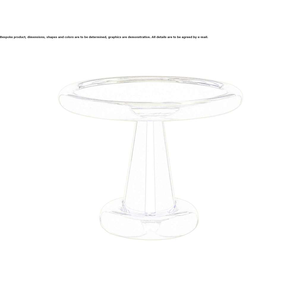 The Spun table consists of a round top and an enlarged curved edge. Matches Spun champagne bucket and high table.