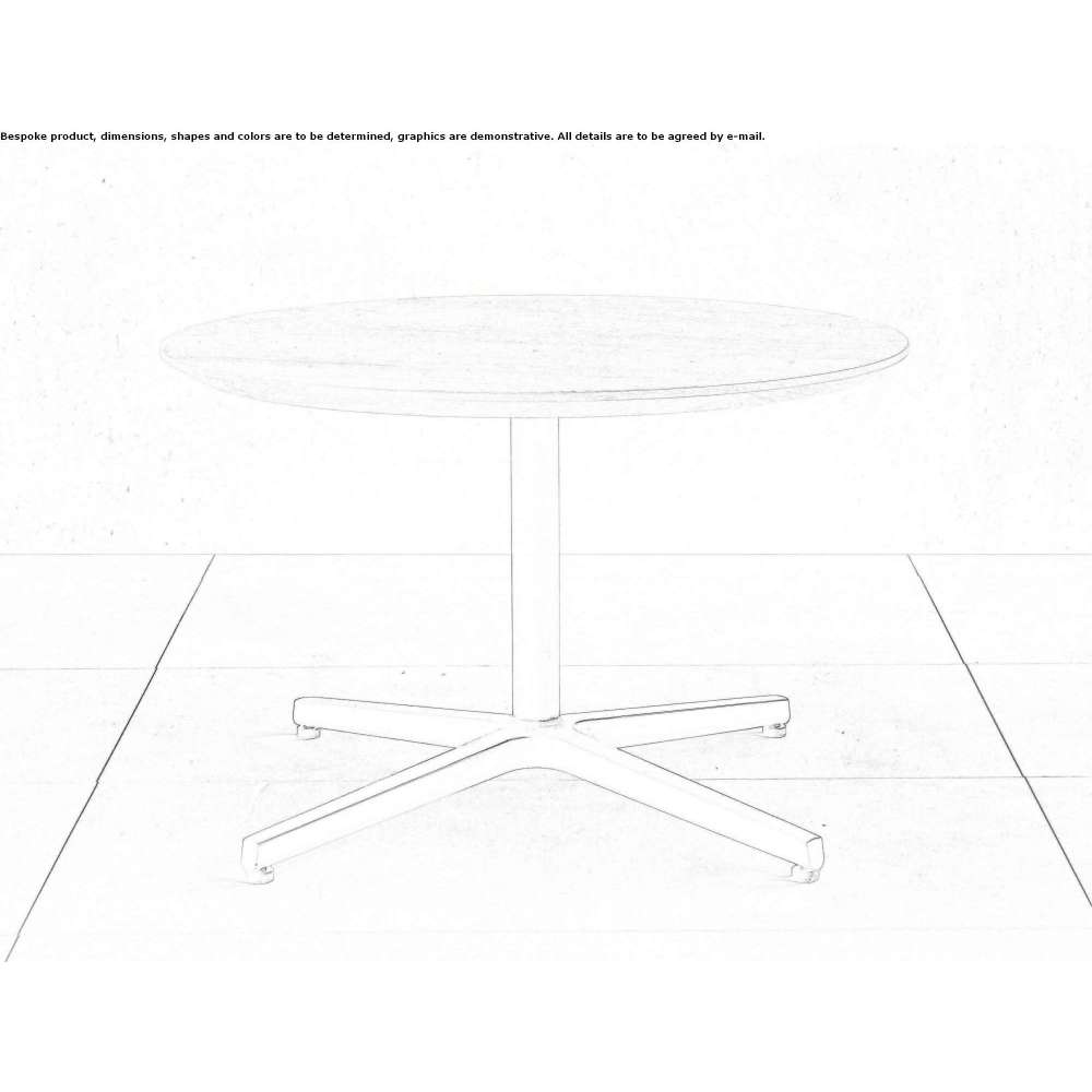 Ray is a round coffee table with a top made of 25 mm thick MDF board, veneered in walnut or oak with a beveled melamine edge. The four-star base is made of polished or lacquered white or black aluminum. Ray max is a new step for us, it is clean and pure. White and wooden surface with aluminum alloy base create this eye-catching table. Ray max looks light and quiet, which is what the designer gave it. Practical and functional, solid and easy to maintain, the table is available in a wide range of sizes and shapes; square, round, rounded square. These features combine to create a table that can furnish both private and public spaces in a distinctive and functional way.