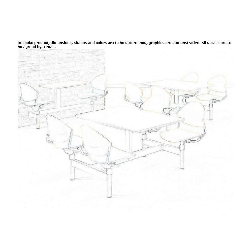 Delfi D800 - Plastic bench-type desk with integrated chairs. Seat/block table, copolymer seat and backrest available in several colors, and MDF top. 45° swivel chairs with automatic return. Metal structure available in 2 versions: 4 free-standing places and 2 places with the possibility of wall mounting. D800 Mod. Ideal for: dining room, fast food, restaurant. for everyone Options: padded and upholstered seat or front panel seat and backrest, armrests with anti-panic tablet, tablet on the left, large writing tablet PC, double stand, floor mounting kit.