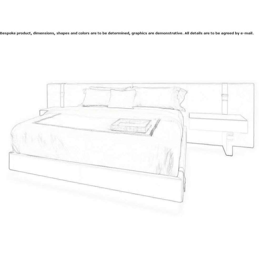 Bond Imperial is a bed from the Bond collection with a large leather headboard and integrated bedside tables. The bedside tables can be configured with a "touch me" lamp for ambient lighting and a wireless phone charger or USB port. Handmade in Italy, the headrest is also available in fabric, velvet or nabuck upholstery and in other sizes upon request.