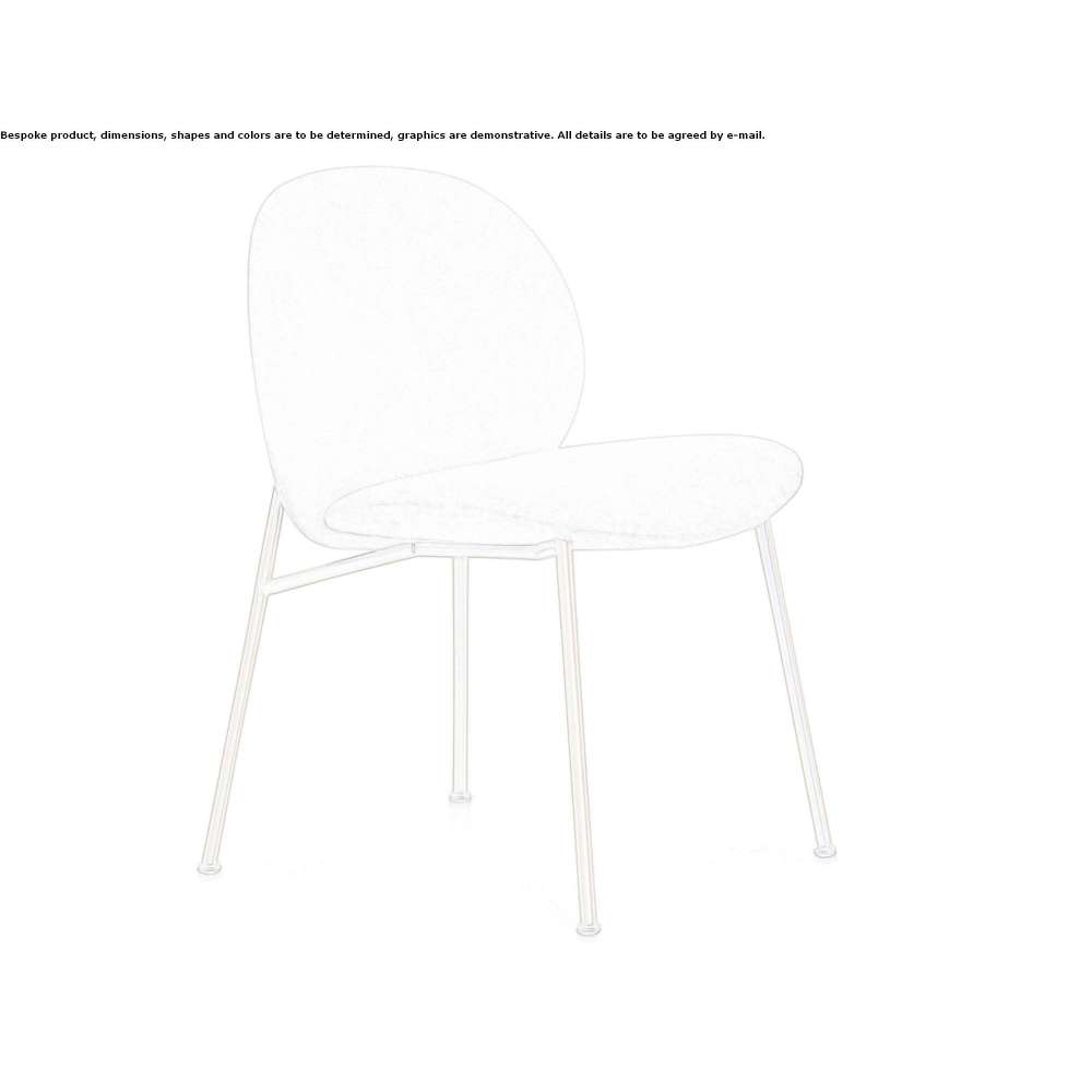The Ola family extends to the dining room: the Ola chair is derived from the same concept of curved sheets, each of which converges at a single center point. Four sheets become two sheets for the armless version. The metal frame has a substantial and graphic silhouette, as opposed to a padded and rounded form. Fully removable covers.