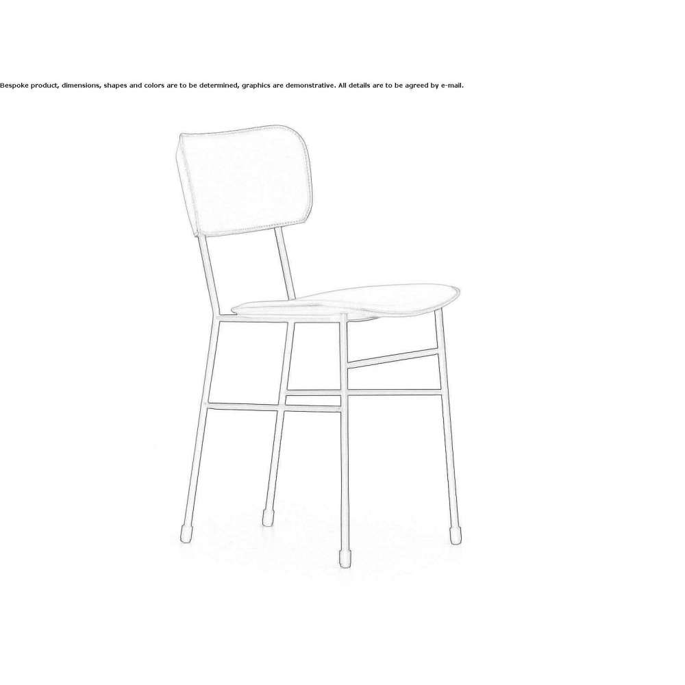Chair with a four-legged base in lacquered steel, rose gold or black nickel. Wooden seat and backrest or upholstered with leather, leather, eco-leather, fabric or non-standard fabric.