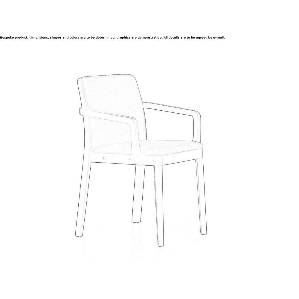 Stackable dining armchair, upholstered seat and backrest, wooden arms. Ash wood collection, consisting of a dining chair and an armchair with stackable wooden arms. Backrest available in wood, upholstery or cane. Upholstery in fabric, vinyl or leather.