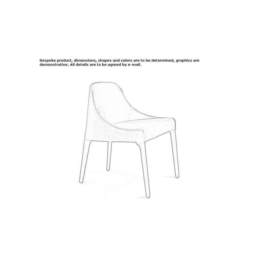 Delicate in its studied proportions, the Jackie chair has enveloping shapes that sum up formal elegance and comfort. The cover is completely removable in fabric or attached in leather. The wooden structure is lined with non-deformable polyurethane and rests on solid wood legs tapered on the outside. The Jackie collection included a small dining armchair, an armchair, a bergère, a chaise longue, a two-seater sofa and a stool. Construction: plywood and solid wood, padded with non-deformable polyurethane foam covered with double protective fabric. Legs: made of solid Canaletto walnut wood or in Wenge color Cover: removable from fabric, attached from leather. Pips: same material and color as the cover. On request, only in grosgrain.