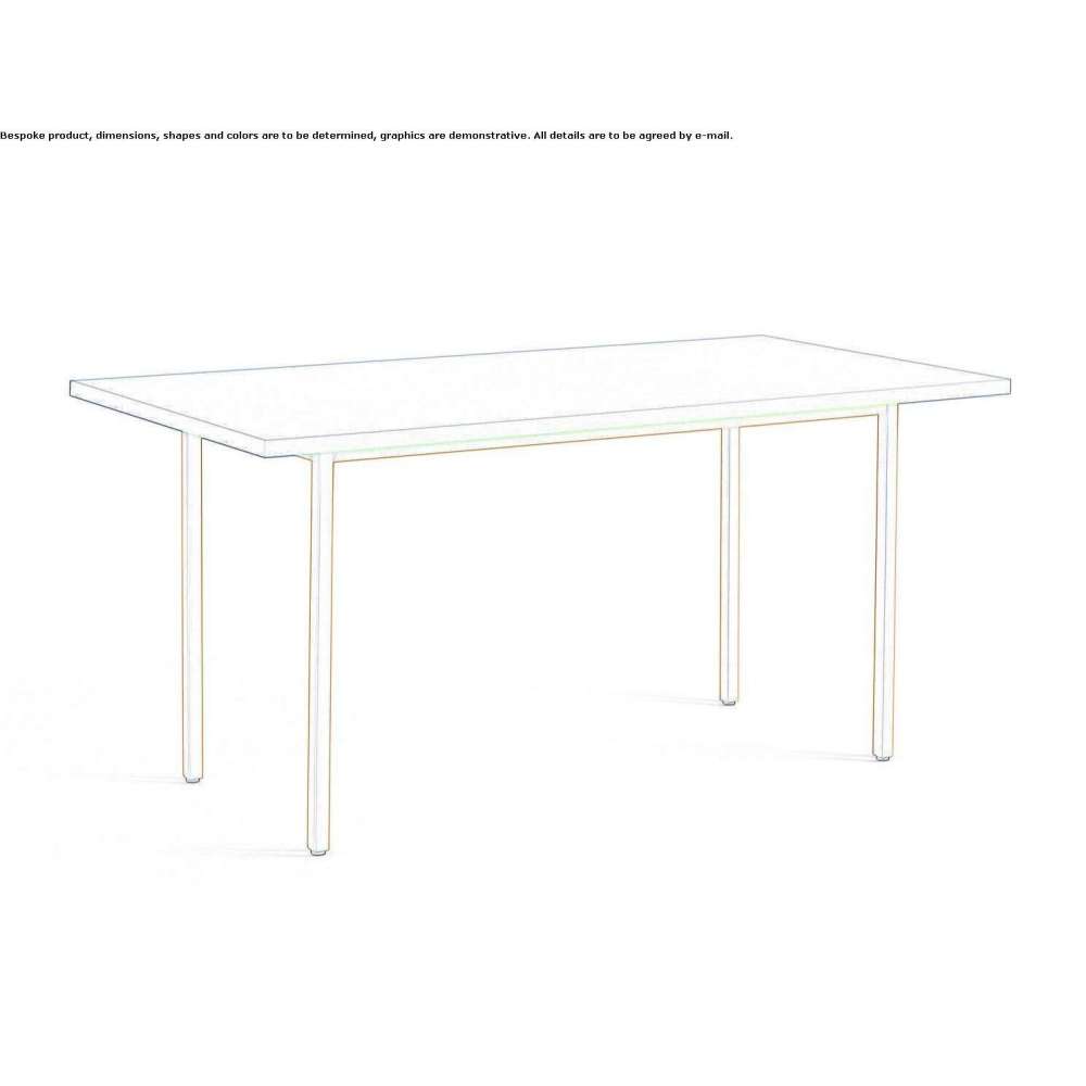 Frame and legs made of powder-coated steel pipes. High gloss 90. Round tables with square supports. Rectangular tables with a rectangular support and a crossbar in the middle.