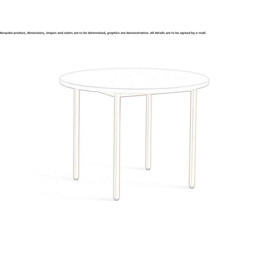 Frame and legs made of powder-coated steel pipes. High gloss 90. Round tables with square supports. Rectangular tables with a rectangular support and a crossbar in the middle.