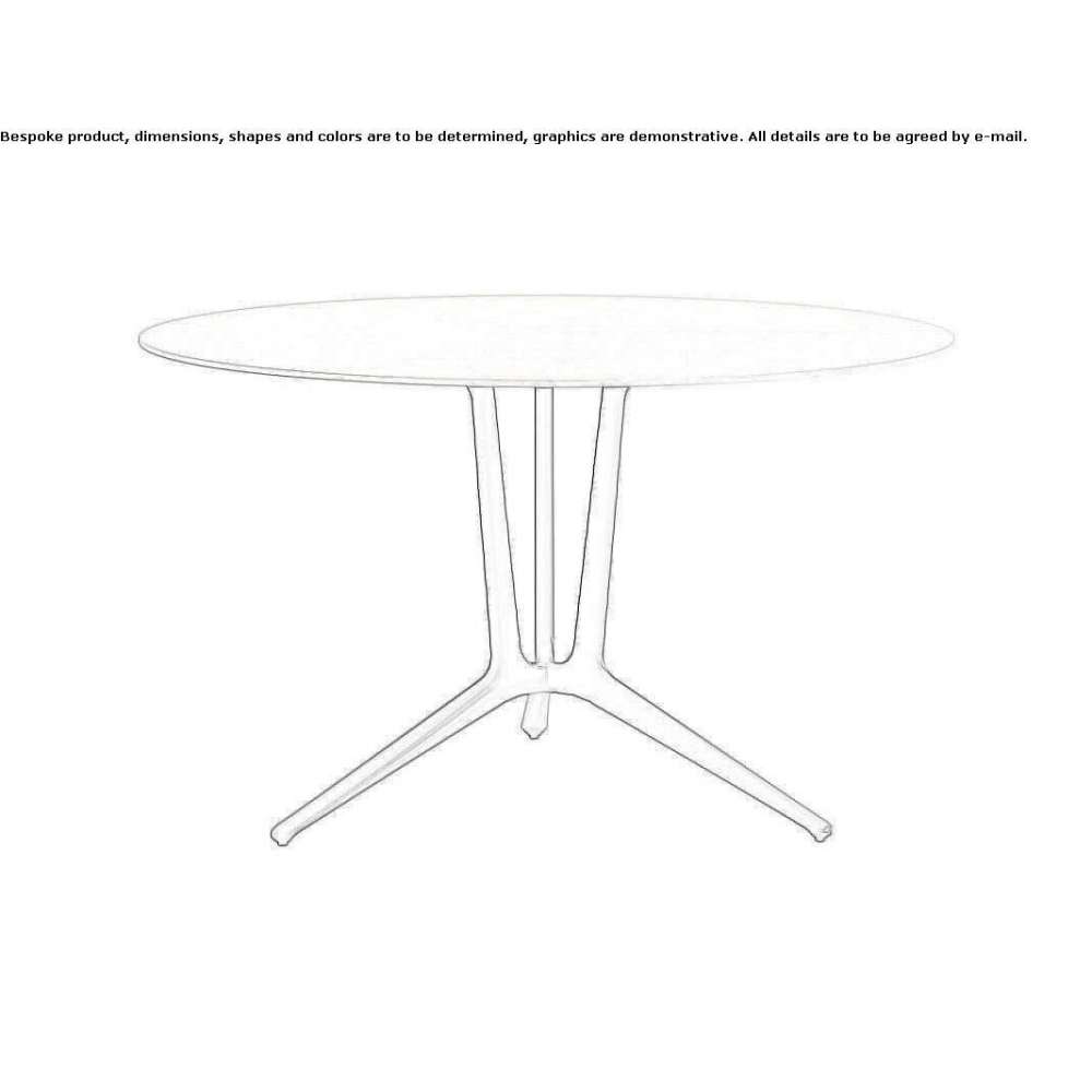 Table with legs and joints made of die-cast aluminum. Fixing plate for table top made of sheet steel and beam made of extruded aluminum. Everything is powder coated. MDF tops covered with various finishes, with lacquered edges and bottom. Marble countertops also available. Adjustable nylon legs.