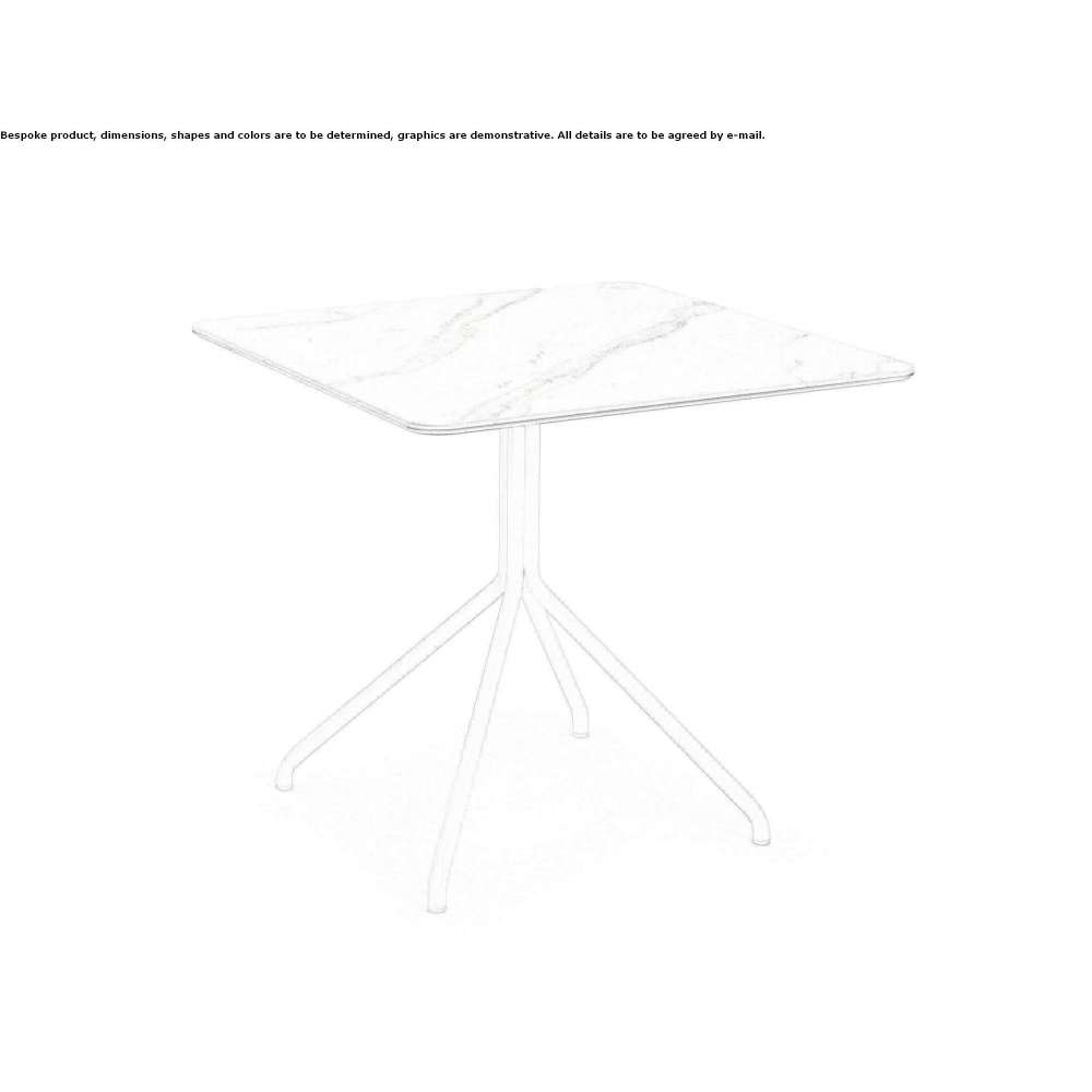 Lol Porcelain is a square table with a porcelain stoneware top. The table tops are made of steel with a core of marine MDF, marble or porcelain, the bases are available with three or four arms, consist of a metal structure treated for use outside and with a matte finish. The Lol table collection has been enriched with new Porcelain countertops in round or square shapes, thus matching the most prestigious installations. Porcelain stoneware countertops are characterized by excellent technical parameters and are ideal for the most delicate applications where maximum hygiene and resistance must be guaranteed. Porcelain countertops are suitable for contact with food, resistant to fungi and mold, suitable for indoor and outdoor use, resistant to frost, heat and high temperatures, can be cleaned very easily while maintaining the surface properties. The Lol table collection is intended for outdoor use; youthfully simple and sunny, its design blends discreetly with both the sparkiest and most subdued surroundings. The tops with a composite core and the bases, available with three or four arms, consist of a metal structure suitable for outdoor use and with a matte finish. The available color palette is common to many Gaber seating collections, guaranteeing consistent colors in designed interiors, rather than vivid contrasts defining different color combinations of bases, tops and seats.