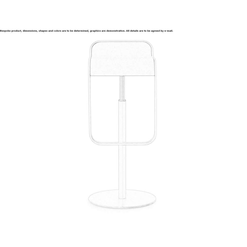 Stool with swivel seat and fixed or adjustable height with a matt chrome-plated metal frame and a base covered with a stainless steel sheet in a "linen fabric" pattern or in entirely powder coated in black or white. The seat is available in several finishes. Also available with a "self-returning mechanism" for seat and floor mounting base Ø 20 cm.