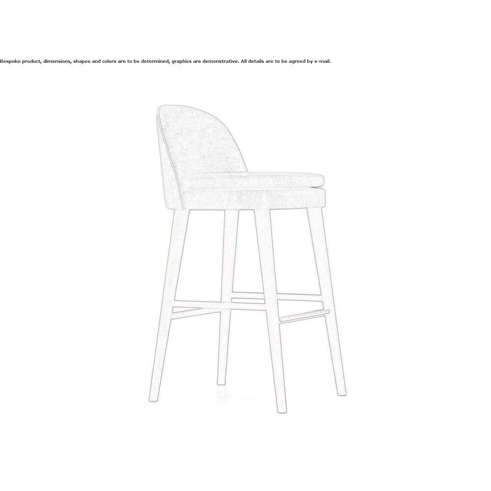 Bar stool, seat and backrest upholstered. Carmen is a system of chairs, armchairs, small sofas and stools, characterized by a combination of functionality and aesthetics. Thanks to thin wooden legs, these elements are extremely light and versatile. The back has a fitted, comfortable shape inspired by classic elements, but the touch brings to mind the modernity of the 1960s. Thanks to the simple structure of beech wood and a wide range of solutions for combining fabric or leather upholstery with various wooden finishes when it comes to legs, Carmen can be adapted to any environment or interior design: hotels, restaurants, bars and even healthcare facilities. Beech wood seats, with seat and backrest upholstered in fabric, vinyl or leather; all with loose seat cushions with removable covers. The seat upholstery is made of elastic tape. The trim on the back is also available in a contrasting color.