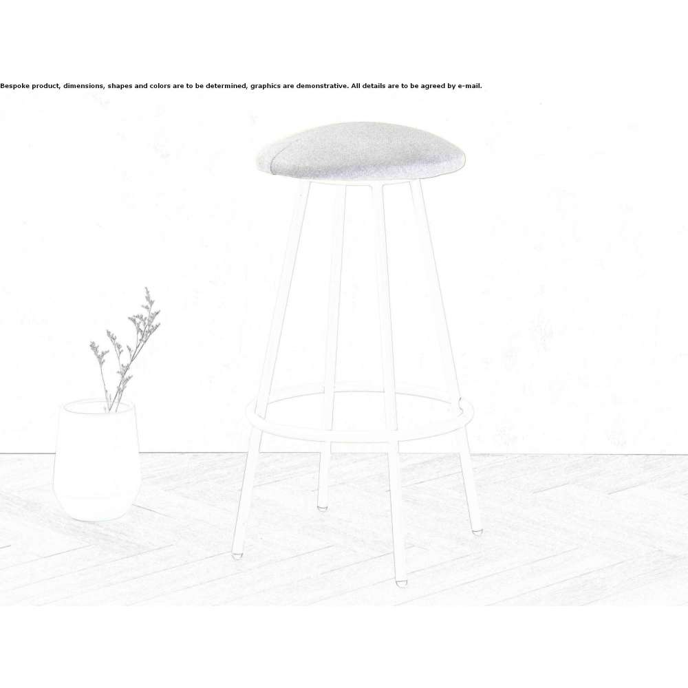 Fungo is a high bar stool made of plywood and high-density sponge covered with fabric. The base with footrest is made of Ø19mm / 2mm steel tube painted with epoxy paint. Of course it looks like a mushroom and it is a mushroom, we call this adorable series Fungo. Now we have included the Fungo stool, Fungo pouffe and Fungo side table on the list, and we have given the large ones from the pouffe and side table a place to store things inside. We give them the best proportion for each type.