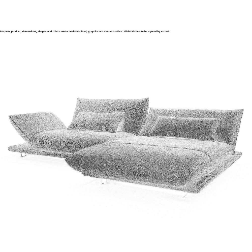 Magical moments. Sit back, relax, sleep. ZAZA is a versatile, modular line with soft, feminine lines. Upholstery, arm and backrest elements are softly rounded on a seemingly floating platform. The armrests of the sofa are manually adjustable, the upholstered elements with motor functions can be moved to a horizontal position. Various coverings (fabric/leather) and seam finishes available. Unique unit production.