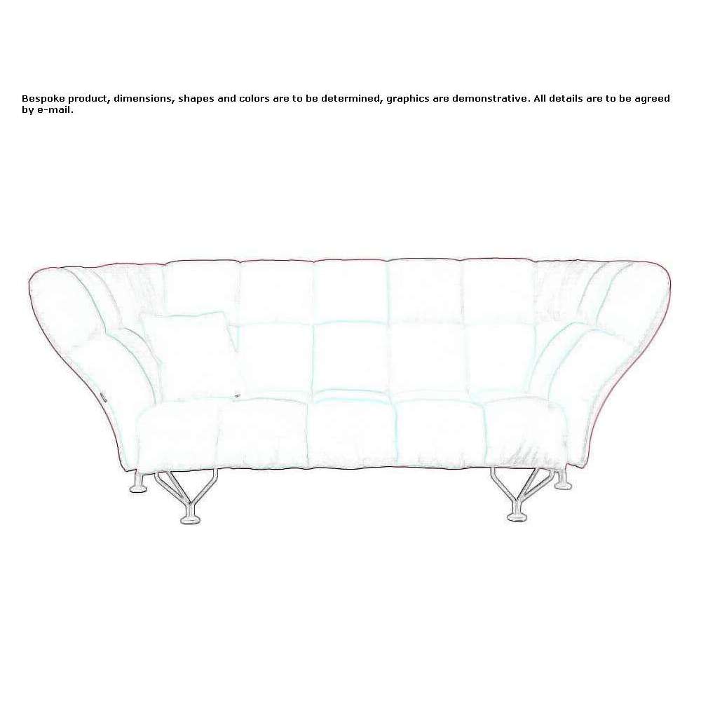 Three-seater sofa and ottoman. steel structure, curved steel legs and polyurethane foam padding. Velvet removable cover available in shades of red or plain fabric. But how many pillows do you need for a sofa? Paolo Rizzatto would answer 33! But be careful, these 33 pillows build the sofa, not just furnish it. Metaphorically speaking, the sofa goes back to the roots of its evolution, when it was nothing more than a lot of pillows on the floor or propped up against a bench. The designer actually draws a new form of macro capitonné in which each module retains its own identity.