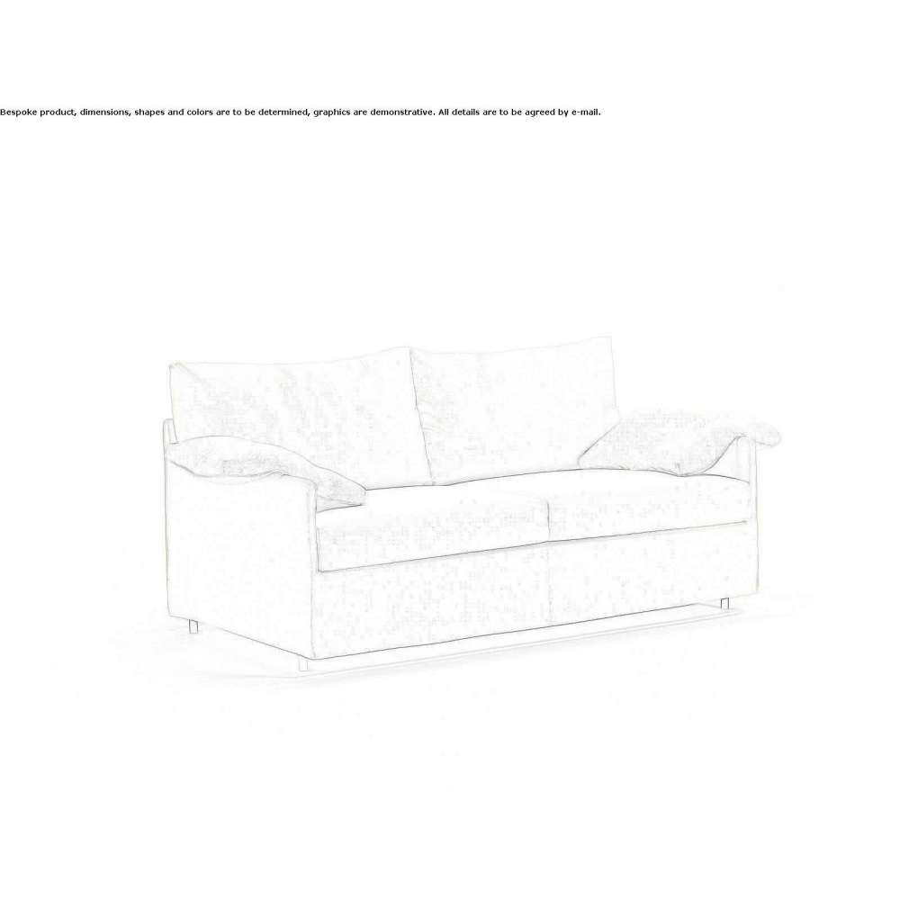 CHEMISE SOFA BED is a fold-out sofa with a poplar plywood structure. Cover made of 100% polyether thermally bonded with a polyamide velvet backing. Seat cushion with a pre-formed structure of polyurethane foam of varying density, covered with layers of acrylic fiber. Backrest cushions made of washed and sterilized goose down, sewn into separate compartments with a polyurethane foam insert. Legs made of black PVC. Fabric or leather upholstery, both fully removable with zippers and Velcro fasteners. Only fabric upholstery, with a ruffle 4 cm from the floor. Leather and velvet versions are always ruffle-free. Electrically welded orthopedic base, high tensile steel frame, epoxy powder coated finish. Steel spring mattress with 100% cotton cover. Fabric cover to protect the base. Mattress is always included in the price.