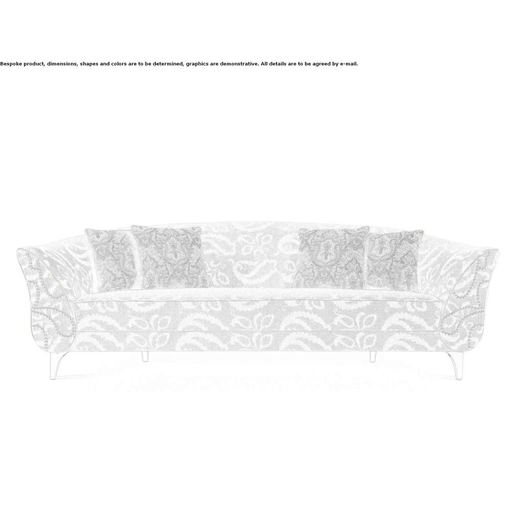 Classic charm meets oriental and spiritual suggestions in a refined and elegant sofa. References to Asian mystical culture are overcome through the use of gold and light nuances, revealing the introspective nature of the brand. Raised from the ground on thin legs, the Agra sofa is upholstered in a precious and light fabric with a typical Etro pattern and is enriched with refined details such as decorative studs creating a paisley motif on the armrests.