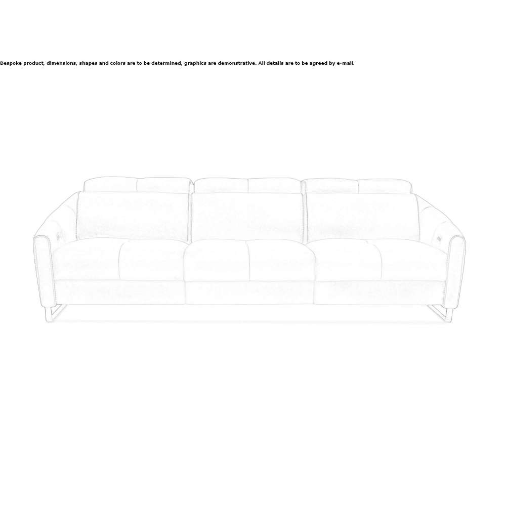 Paky is a modular sofa with a wooden structure, filled with ecological polyurethane foam and Dacron cover. The sofa is equipped with an independent motor for tilting the headrests and footrests for each seat. The metal base is available in a stainless steel or bronze finish.