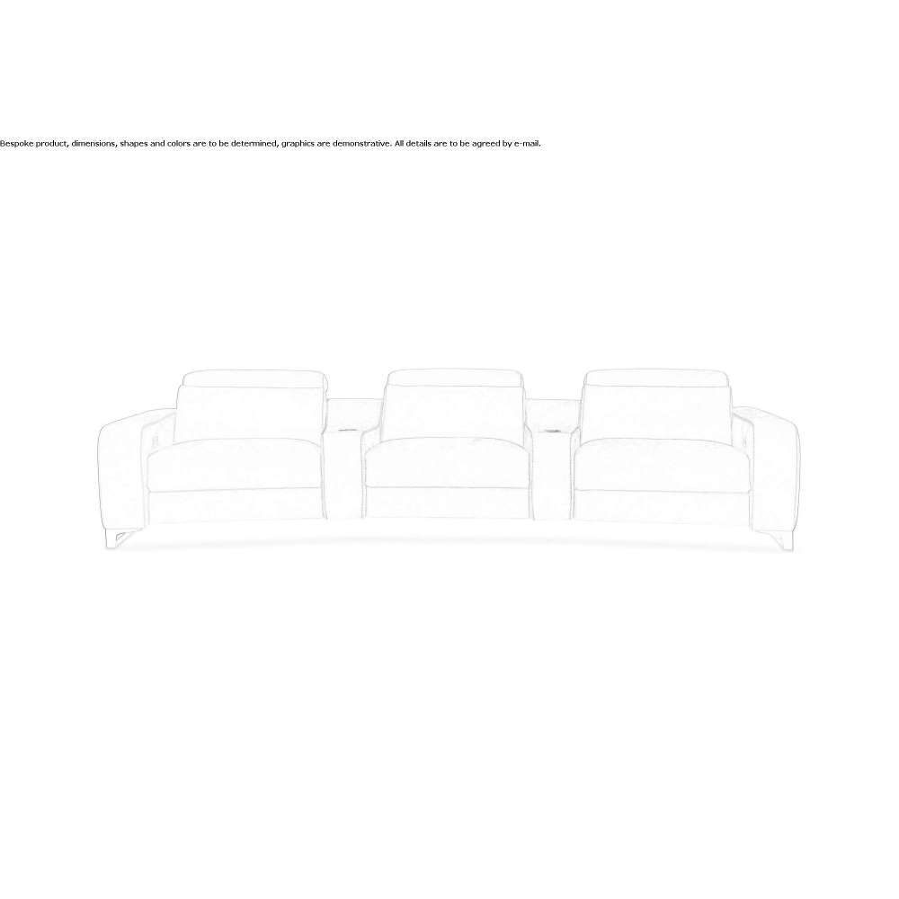 Lory is a sofa with a wooden structure, filled with ecological polyurethane foam and leather upholstery. The sofa is equipped with an independent motor for tilting the headrests and footrests for each seat. The metal base is available in a stainless steel or titanium finish.