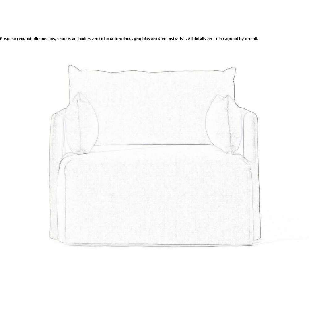 one-seater sofa with a removable and washable outer surface made of custom-made cotton-linen blend fabric. The offset is the result of research into "balance" conducted by Norm Architects. The studio wanted to create a sofa as simple as possible, taking into account a set of paradoxes: giving it a solid yet delicate look, architectural yet inviting and homely.