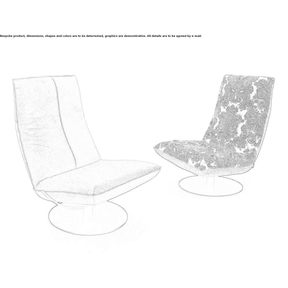 Less means more. Swivel and tilting chair. Comfortable headrest and comfortable seat with thigh relief. The seat shell can be locked in any position. Optionally with base plate or cross frame, black. Covers available in leather or fabric from our collection. Unique unit production.