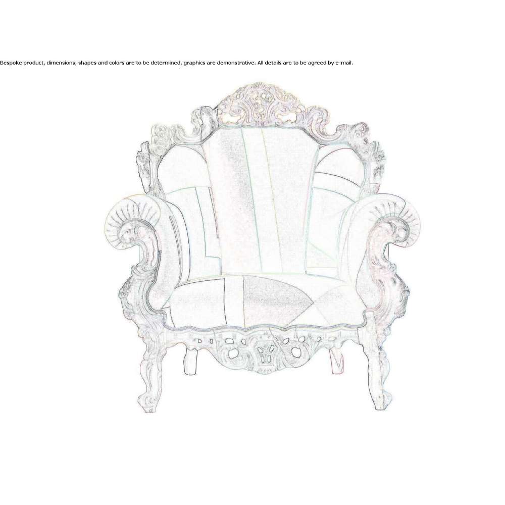 An iconic object in the world of design, the Proust Armchair has been interpreted here anew with a fixed cover made of bright, multi-colored fabric designed by Mendini himself.