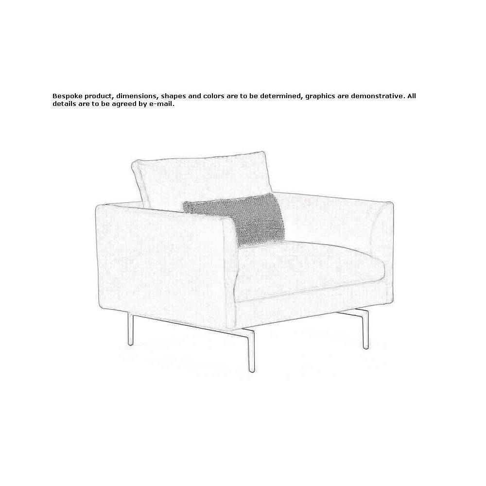 Armchairs, monoblock and modular sofas. Aluminum alloy legs, polished or painted black, or with a natural or black satin nickel finish. Steel frame. Suspension on elastic straps. Upholstery in polyurethane/hot-bonded polyester fiber. Seat cushion upholstered in graded polyurethane/hot-bonded polyester fiber. Fixed inner cotton cover. Removable outer cover in fabric or leather.