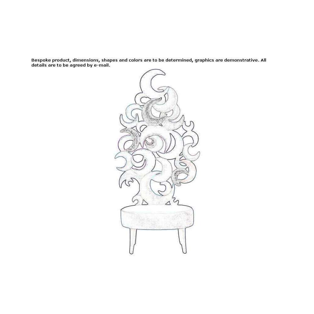 The Milleuna Luna armchair is a wonderful throne armchair decorated with moons of various sizes and colors that decorate the backrest. Characterized by precious artistic mosaics and silk velvet, all made in Italy. Wooden and plywood structure. Seat and backrest padded with polyurethane foam. Decorative elements (mosaic) on the back. Legs upholstered with fabric.