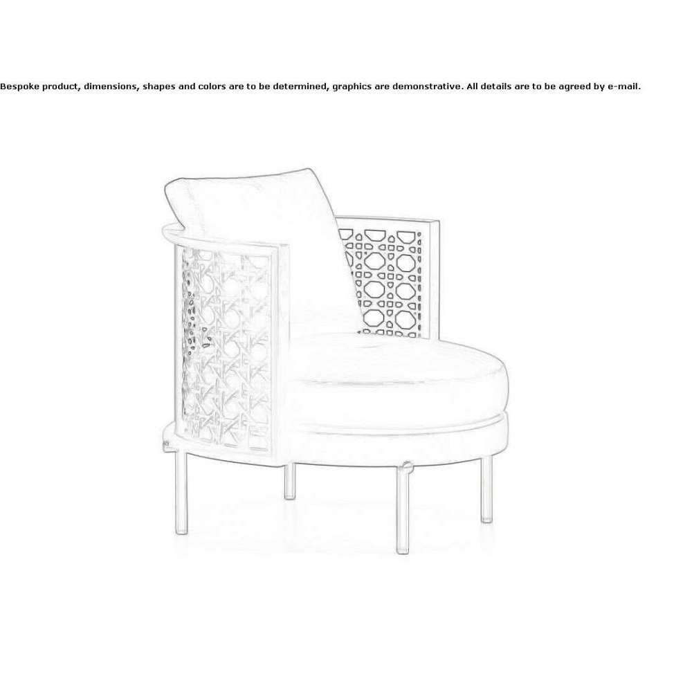 The Small armchair is also available in the Torii Nest version with a woven leather backrest and a pattern inspired by Vienna straw, placed in an ash wood frame, which is mounted on a base made of the same material. The Torii family includes sofas - with high or low backrest and a linear shape, rounded at the shoulders - inclined sofas with a combination of two different depths, armchairs and lounge and dining chairs, ottomans, coffee tables and a slim, oval console table, perfect to be placed anywhere in the showroom. The diverse product range allows you to design a flexible layout in which you can also combine individual elements to create a strong visual whole. The metal frame found in Torii family pieces evokes the image of "Senbon Torii, a wooden colonnade forming a gallery of 1,000 vermilion torii gates," as Nendo reminds us. The slim backrest is vertically quilted and piping runs along the perimeter of the cushion, accentuating couture workmanship. Eco leather and eco nabuk trim are available in a slightly contrasting color, but in the same shade as the fabric when combined with a textile cover, while leather versions are available in the same shade when combined with leather upholstery. All upholstered elements of the system can be customized by choosing the cover: 100% fabric or leather, or fabric with leather backing. The seats can be equipped with leather magazine cases, made using the best luggage-making techniques and enhanced with the same metal details as the base . The end of the horizontal metal element has been designed in such a way that it almost supports the backrest and seat, referring to the Kigumi technique, borrowed from the Japanese tradition of wooden construction. A small decorative disc with a black nickel finish, in the form of a jewel-like button at the end, adds a valuable detail to the set and creates a series of contrasts with the bronze lacquered metal leg finish. The armchairs and swivel chairs in the shape of a perfect circle have been designed to meet a variety of requirements, both in terms of functionality and ergonomics, available in a wide range of different types. The armchairs - in Bergère, Large, Medium and Small versions - and small armchairs for the living room and dining room are the result of in-depth research carried out to find the best way to express the refined simplicity of craftsmanship. The base is available in leather or fabric.