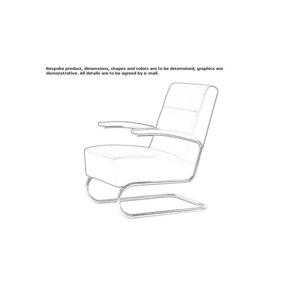 The unique properties of this armchair are elegance, timelessness and exceptional seating comfort. Added the lightness that only a cantilever model can have. While the first tubular steel chairs of the 1920s were rarely upholstered, Thonet's 1935 catalog featured a series of extensively upholstered armchairs and sofas. Thonet's original design S 411 from 1932 probably marks the beginning of a new series of products. Today it is produced with high-quality upholstery. A matching footstool is available.