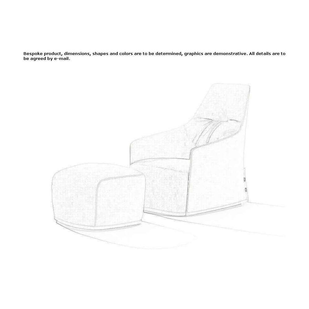 Armchair and pouffe with structure and seat in molded flexible dual-density polyurethane. Feet: plastic chutes or swivel base. Initial covering: parts made of cotton fabric with feather inside and parts made of polyester lining. Final coverage: stretched version, removable in fabric and non-removable in leather and eco-leather;