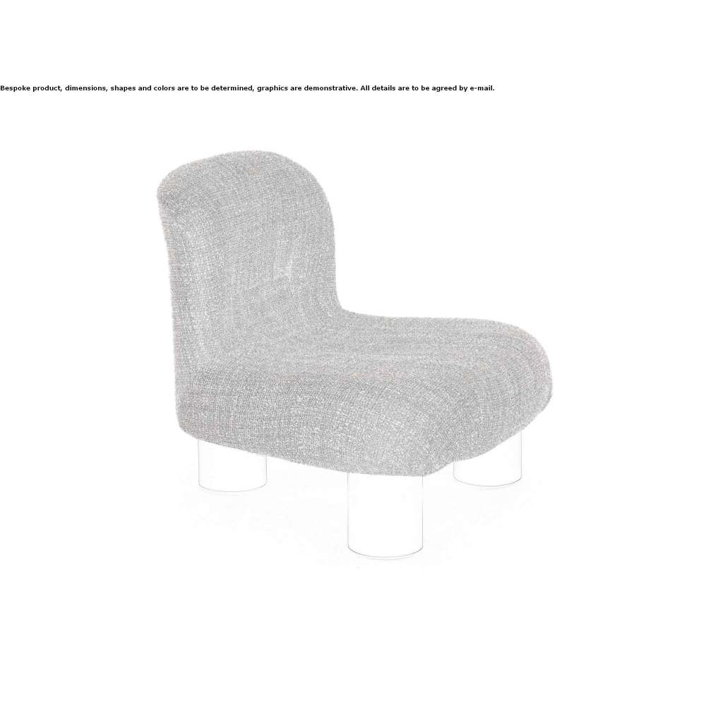 Botolo - a low fabric chair. Cini Boeri designed Botolo in 1973, giving life to a new design style in which it was possible to choose the height of the legs to have a dining chair in a high version or in a style, then modern, "low living", a way of living and sitting on the ground There are wheels on the legs for easy movement.
