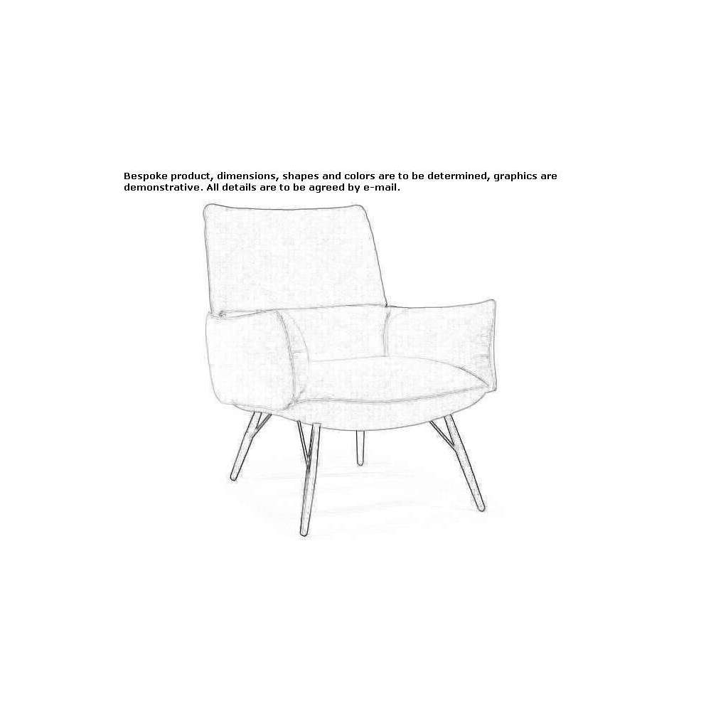 In the fabric version, the upholstery that emphasizes the profile of the armchair is made of leather and is available in the same color as the armchair or in a contrasting color.