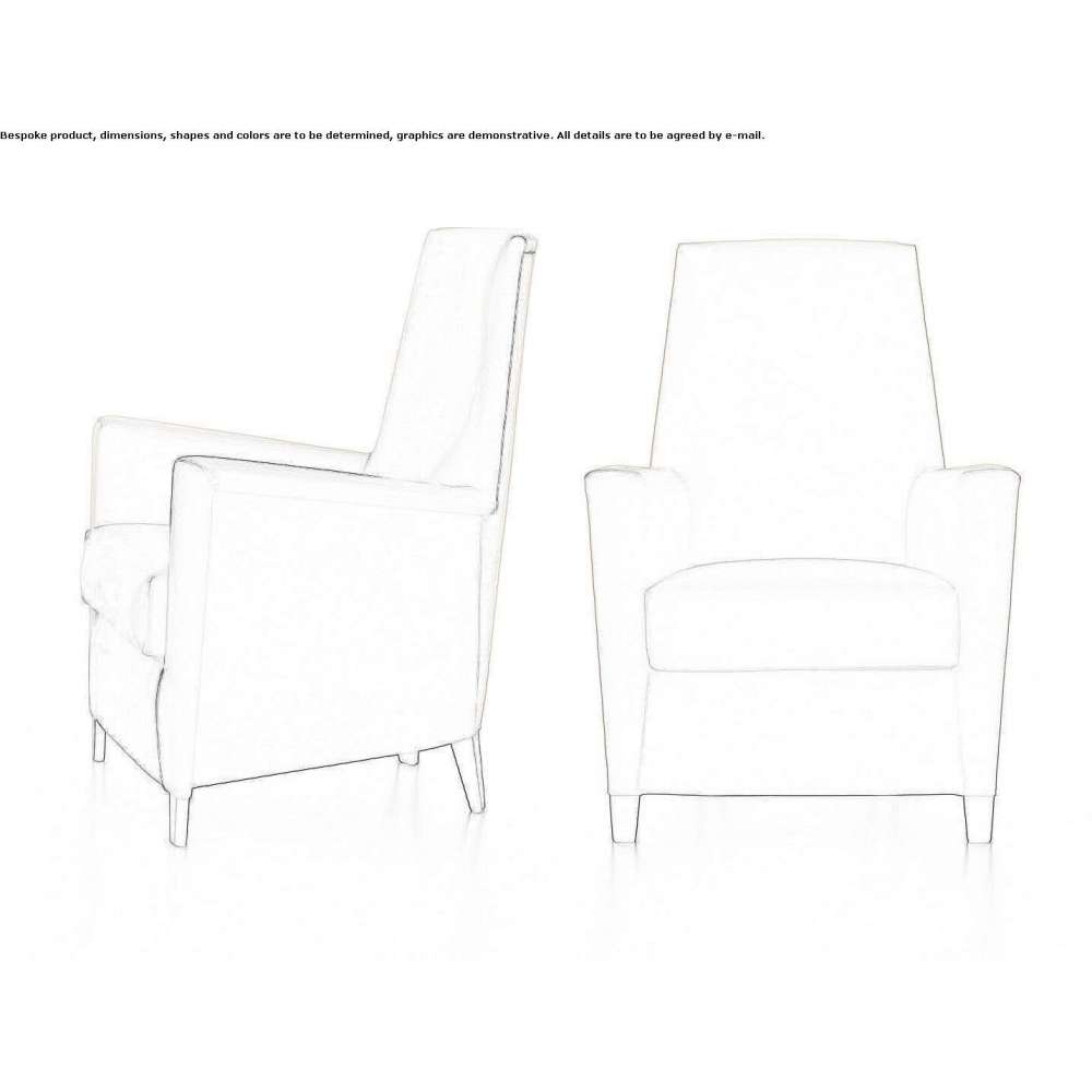 An essential line. It offers a high level of comfort despite its reduced dimensions. The high-back version collection consists of an armchair and a pouffe with a footrest. The low-back version consists of an armchair, a 2-seater sofa, a 3-seater sofa and a pouffe with a footrest. The cover is completely removable. Frame: Curved plywood and solid wood frame. Padded with non-deformable polyurethane of varying density, spring-loaded with interwoven elastic straps. Lining made of white Velfoder combined with polyurethane. Feet made of beech wood stained cherry or wengé. Cushion filling: Seat cushion made of non-deformable, high-density expanded polyurethane plus Dacron DuPont Gold-Filigrana.