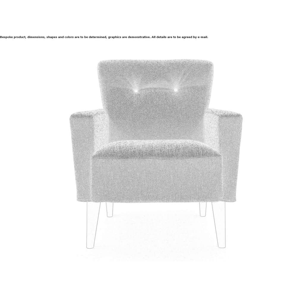 A small armchair available in two different heights: Nicole with a backrest height of 80 cm and Nicole A with a backrest height of 93 cm. Wooden frame upholstered with D/35 polyurethane foam covered with double light velvet fabric. Seat cushion made of polyurethane foam Kg 40/m3 + Kg 35/m3. Wooden backrest upholstered with polyurethane foam D/30 + D/25. Feet made of ash, wengé or walnut-stained wood.