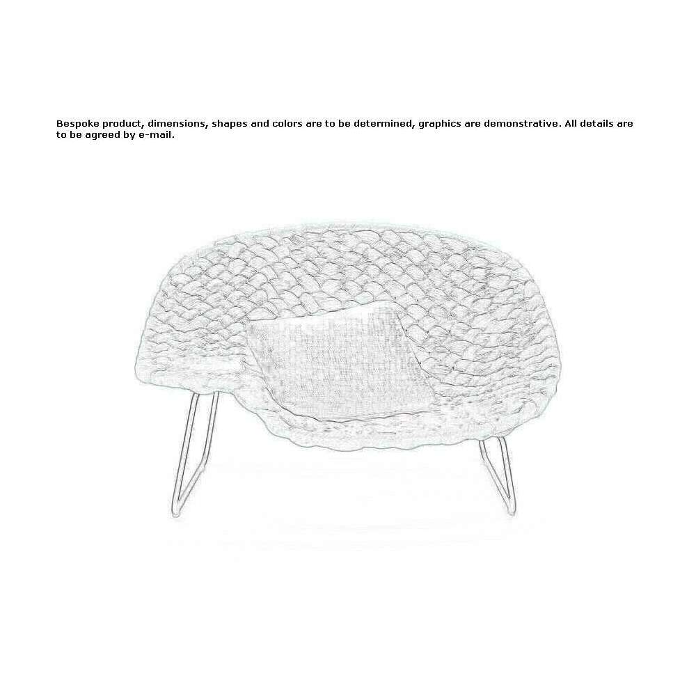 Chaise longue with a fixed, hand-woven upholstery cover. The Shito series also includes an armchair and a pouffe/container. Construction: steel. Upholstery: Chain Outdoor woven tubular knit fabric, polyester filling. Base: – AISI 304 stainless steel, lacquered in glossy Mano Lucida wood color range. – AISI 304 Ornué stainless steel finished. Plastic dividers. Notes: The Shito chaise longue is woven using Chain Outdoor because, compared to the indoor version of this tubular knit fabric, Chain Outdoor allows for a more harmonious creation of a complex weave structure. The Ornué finish was made exclusively by De Castelli. To ensure full seating comfort, it is recommended to use loose cushions.