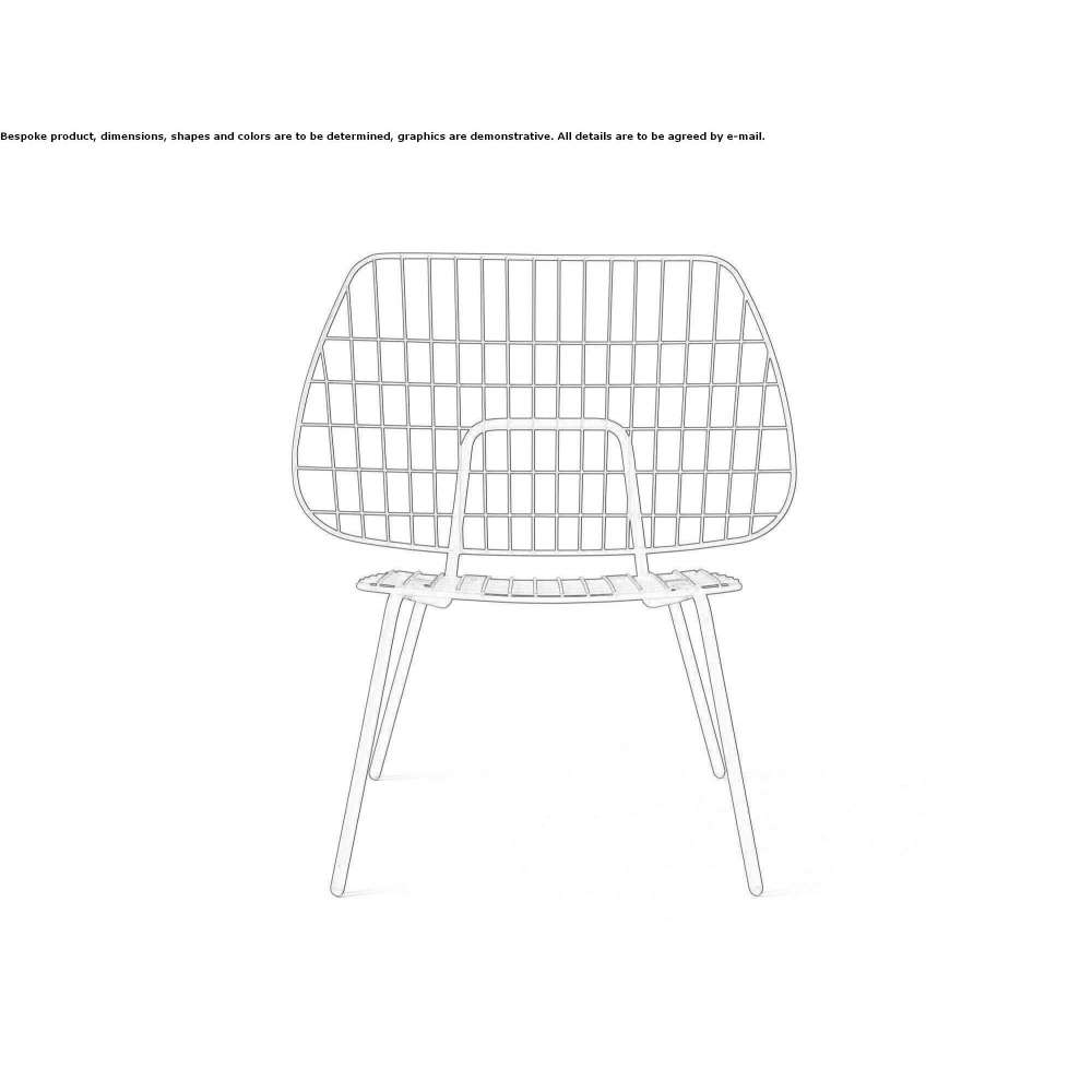 Powder-coated steel tubular chair with inverted backrest. Available as a dining chair and a low Lounge armchair. Both have the same light and airy look, and the thin structure of the wire frame gives them a delicate character, while providing the perfect contrast with the cushions you place on the dining chair - or with the blankets, pillows and soft objects on which you lie on the lounge version.