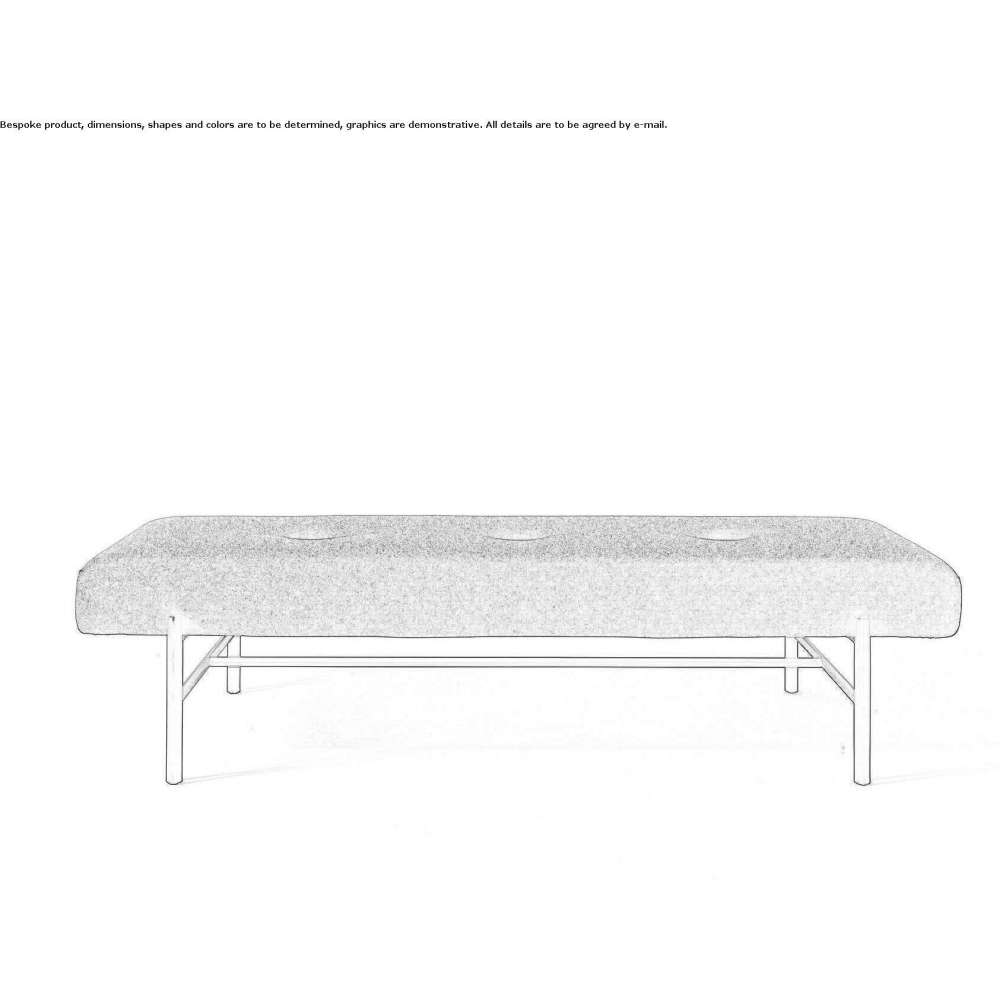 The upholstered bench and chaise longue pay homage to classic taste reinterpreted with a modern twist. Lacquered metal tubular frame supports seat with leather or fabric covers; elegant and simple, it can fit into any space in the house.