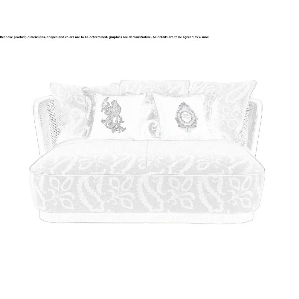 Striking a perfect balance between linearity and movement, the Caral chaise longue is characterized by an elegant and dynamic design. The furniture is upholstered in a precious fabric with a typical ETRO pattern, with a low and comfortable seat: a harmonious contrast with the lightness of the fan-shaped cane backrest. The base is made of bent, multi-layered wood with a brushed dark brown finish. Seat made of multi-layer wood and expansive polyurethane foam of variable thickness. Upholstery and trim in fabric or leather from the collection. Backrest in Vienna straw in colors from the collection, attached to a frame of solid beech wood stained matte dark wengé, turned and numerically controlled. Closed wicker trim in the color of Vienna straw. Backrest cushion made of goose down. Upholstery and trim in fabric or leather from the collection. Other finishes and upholstery available to order from the Etro Home Interiors collection.