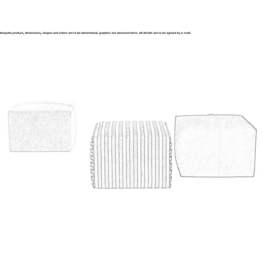A pouffe on wheels that can be used anywhere as an additional seat or as a service element at tables, desks and shelves. The soft cube gains graphic value when covered with striped fabric, the lines of which run on the sides in the opposite direction.
