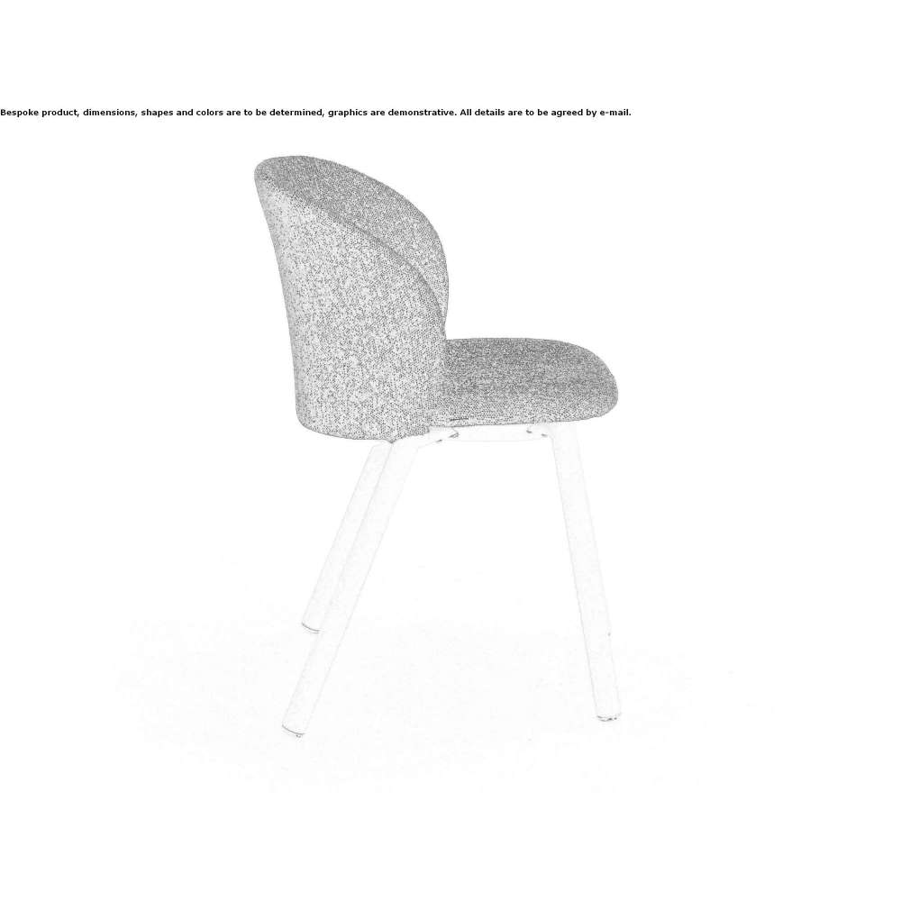 The trestle frame is formed by 4 cylindrical aluminum alloy legs with a diameter of 35 mm and supports a rounded plywood seat with polyurethane foam padding. The rear legs extend to connect to the backrest via a bayonet solution, creating a sense of uninterrupted continuity. The backrest has a steel core and polyurethane foam padding; its curved and enveloping shape gradually narrows towards the center at the top. A hidden zipper makes it easy to remove the cover.