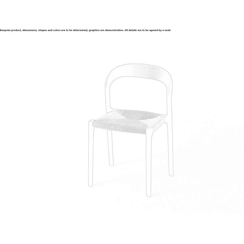 Stackable chair made of solid ash wood with sheet steel angle reinforcements, available in natural color and charcoal finish, with a seat available in a cellulose rope braid, in a finish available in our collection, or upholstered with a seat in a plywood board and padding made of polyurethane foam covered with layers of acrylic fiber. Fabric, leather and Cuoietto upholstery fully removable with divisible zippers. Floor support secured with PVC supports with replaceable feet (black PVC or felt) depending on the floor.