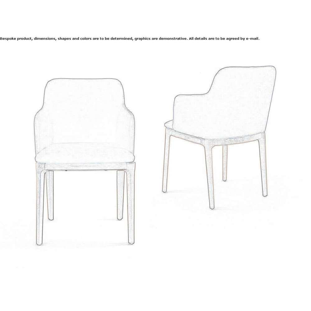 Cloe is an elegant chair with solid wood legs and a structure made of polyurethane, with a backrest and seat in a continuous line. Version with armrests, leather or fabric cover; the back of the cover can be smooth or with diamond-shaped stitching.