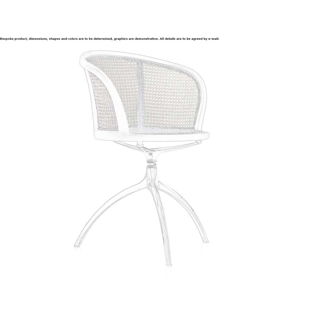 The design of this armchair combines seemingly disharmonious elements that create a pleasant contrast: a swivel tripod base in die-cast aluminum, equipped with a visible damping mechanism, and a surrounding Viennese wicker shell, set in a frame made of solid beech wood, formed by steam bending .