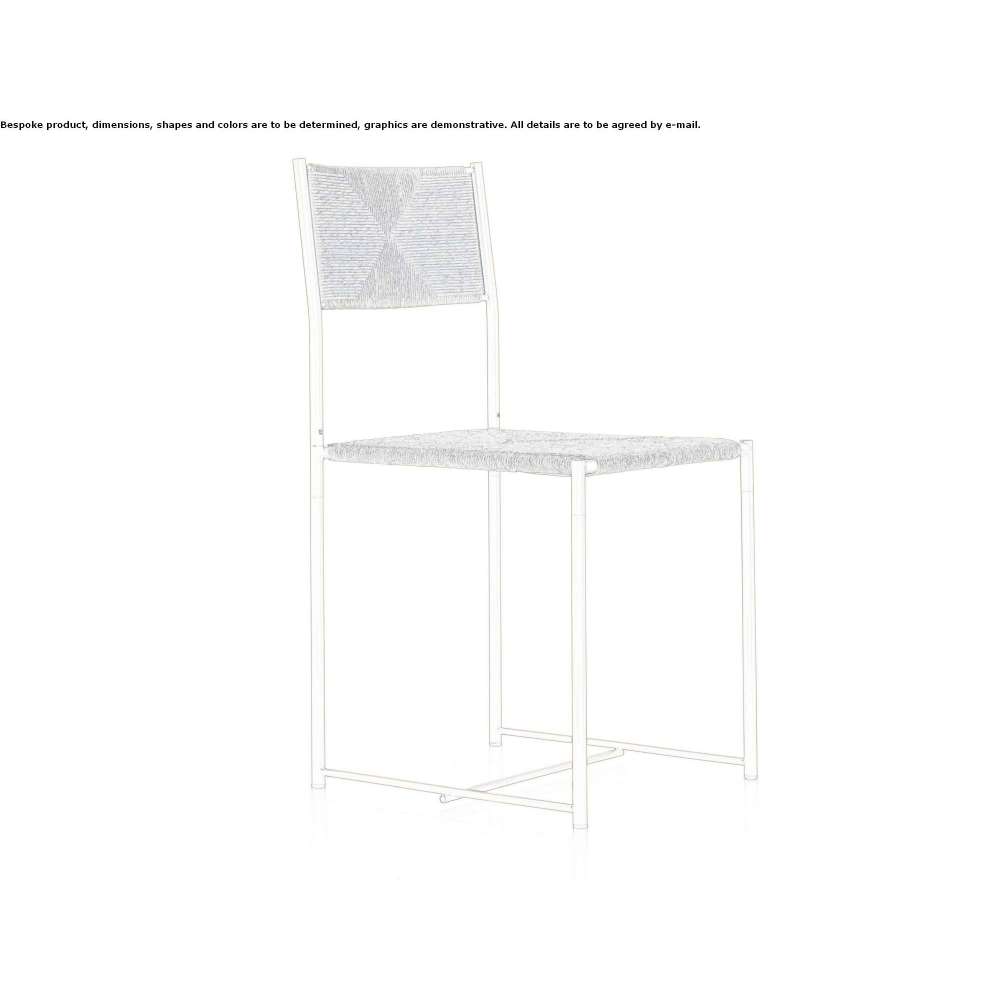 Chair with a structure made of chrome-plated or stove-enameled steel, seat and backrest covered with paper straw. The design of the Paludis chair is an extension of the spaghetti concept and combines a minimalist painted or chrome-plated metal structure with the unusual material chosen for the woven seat and backrest: a special "straw" made of recycled paper in a wide range of colors. Its dual personality, which combines tradition and design, makes it the perfect chair to accompany any table or interior.