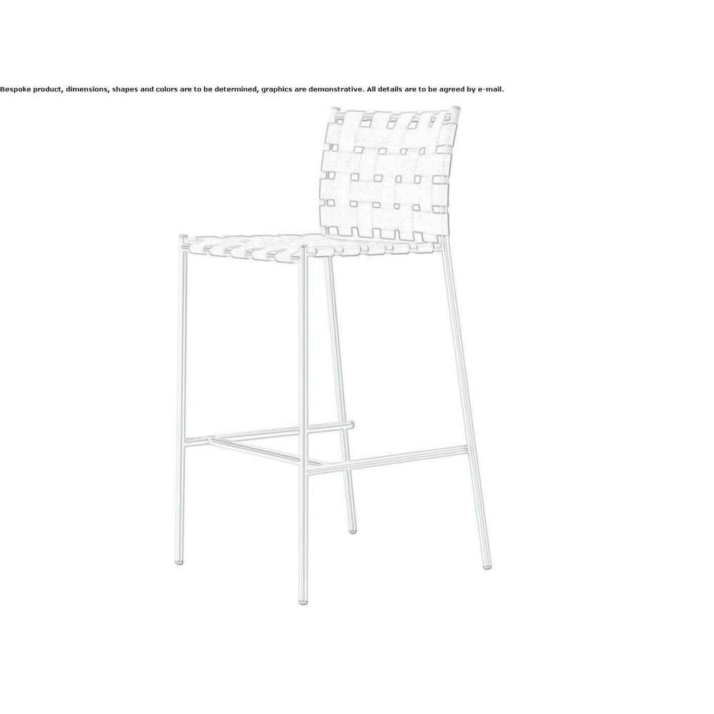 Medium height stool with a structure made of brushed 316 stainless steel. Seat and backrest covered with strips of flexible material arranged crosswise. Jasper Morrison's direct and concise language was applied to the spaghetti chair. Today, Jasper Morrison offers his own original reinterpretation of this Alias icon, 30 years after its introduction. A highly innovative continuation, tagliatelle is a chair inspired by the perfect synthesis of technology and form contained in the spaghetti chair, extracting and transforming each element. The structure is made of stove-enameled steel pipes, and the backrest and seat consist of interwoven elastic straps, available in one color or a combination of shades. The resulting form is inspired by Zen; studied, yet simple elegance. A harmonious and balanced composition resulting from scrupulous attention to every detail; calculation of the diameter of steel pipes, structure locking system, invisible system used for fastening flexible belts. The tagliatelle collection has been enriched with a number of new elements, all of which include structures made entirely of painted steel tube and available in various colors. A chair with armrests and a comfortable armchair, stools available in two height variants and a practical table furnish the house in a simple, refined and highly functional way.