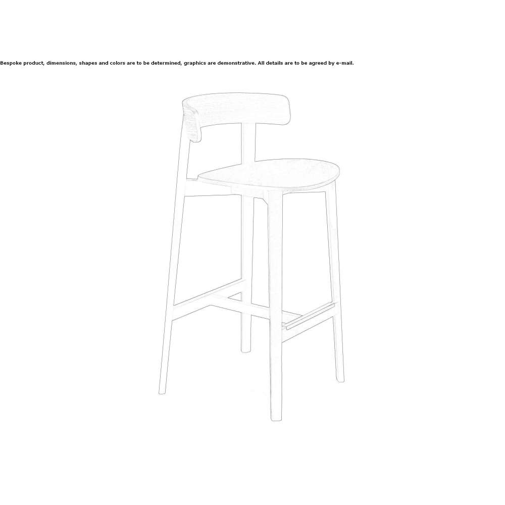 A stool with a wooden structure on four legs. Wooden seat or upholstered with leather, eco-leather, fabric or fabric tailored to individual needs. Available in two heights: 65 cm (25.6 in) or 75 cm (29.5 in).