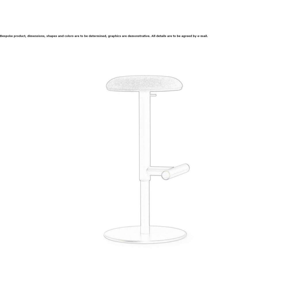 Height-adjustable stool with upholstered seat in fabric, artificial leather, leather or. Steel structure powder coated in various colors. Available in a custom version with a contrasting powder-coated footrest interior.