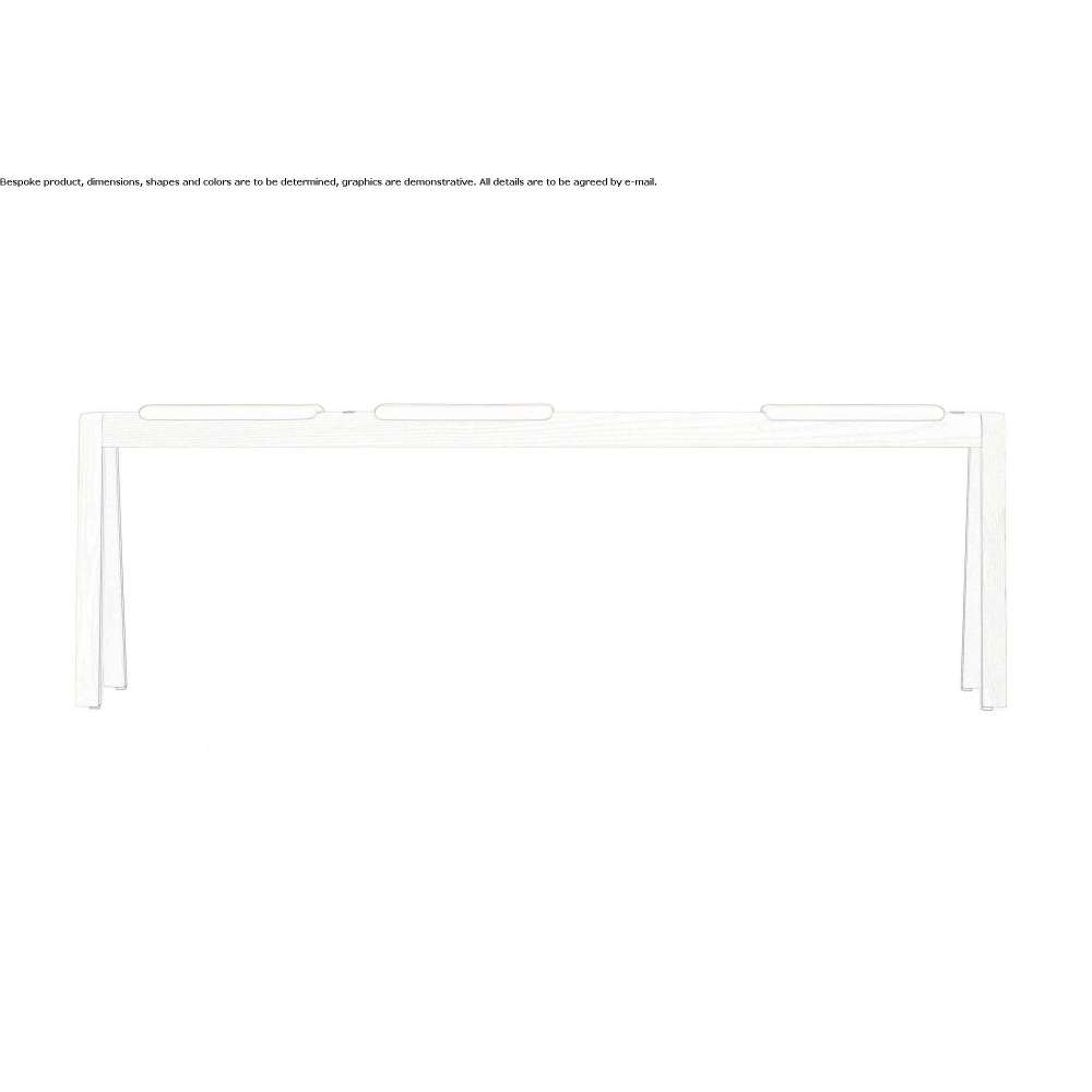 Multi-layer beech wood bench installed on a steel beam and legs, covered with solid ash.