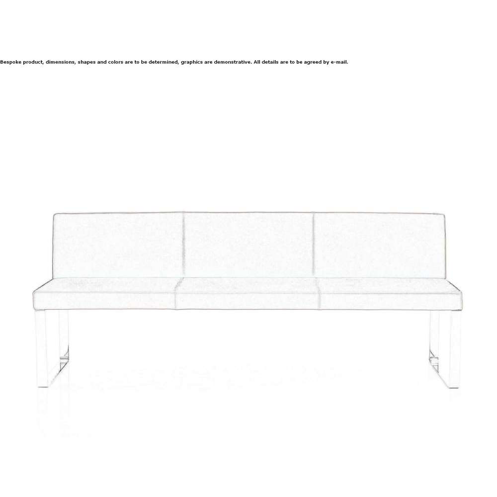 Upholstered, internally cushioned bench with fabric or leather cover. Available in two different types of backrests. Optionally with armrest, also in two versions. You can choose from wooden legs (oak or walnut) or polished chrome guides. Corner bench also available.