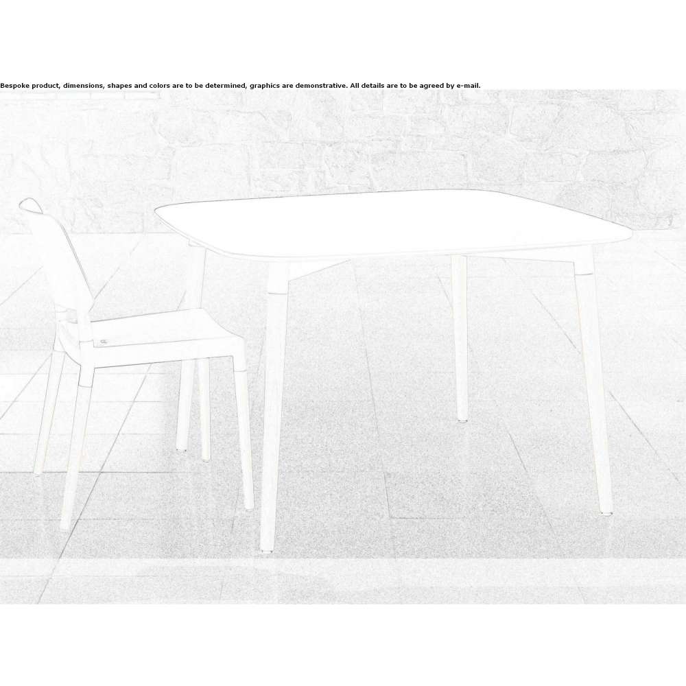 Belloch is a large, comfortable table with a laminated top with rounded corners and beveled edges, supported by a solid metal structure and elegant cone-shaped wooden legs. In a square or rectangular version, it is stable and is the perfect companion to its namesake, the Belloch chair. It is a nice, spacious and very solid table.