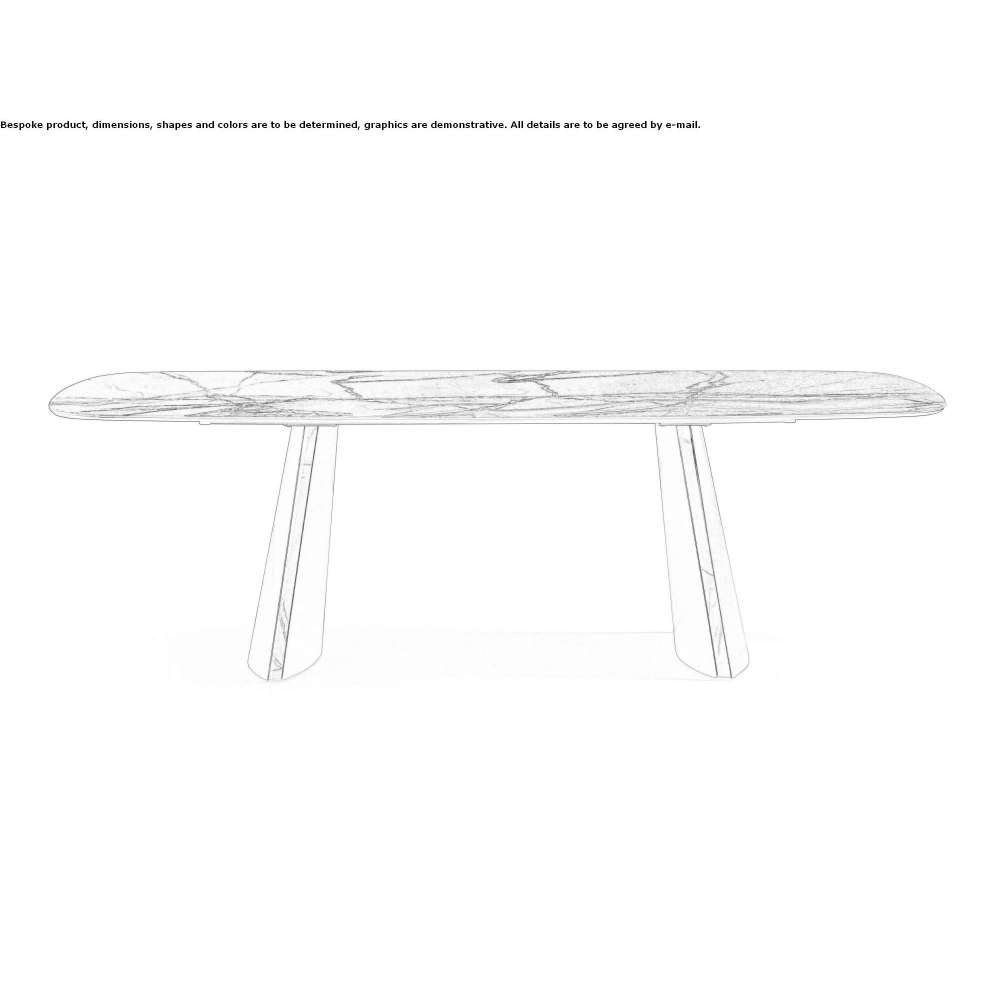 Inspired by the architecture of traditional Japanese Shinto temples, which gave it its name, the Torii table is distinguished by the "tectonic" values of its base, composed of two slightly inclined metal elements. The elegant design is complemented by a rigorous top available in wood, ceramics or marble. The formal values of the Marconato & Zappa design are clearly visible in the version offering a single material finish for both the top and the decorative leg inserts.